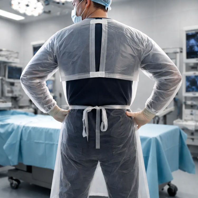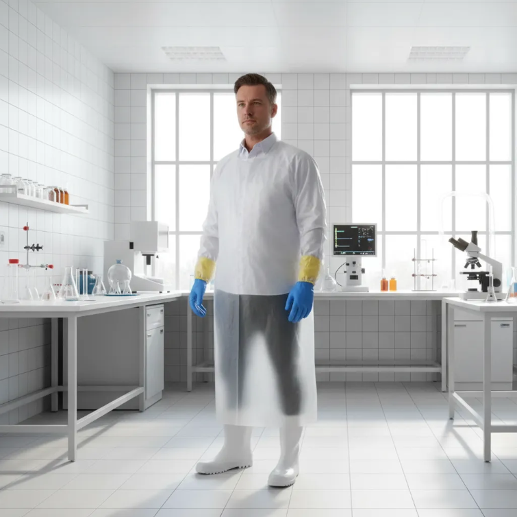 O Avental Impermeável de Vinil Tipo Barbeiro transparente é produzido em Vinil de alta qualidade e é 100% impermeável. Tem mangas longas com elásticos nos punhos.